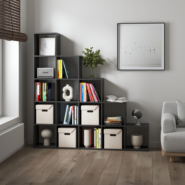 Стелаж VAYS M-5 — це сучасна етажерка з 15 відкритими комірками, ідеально підходить для зберігання книг, іграшок, коробок, декору та офісного приладдя. Завдяки мінімалістичному дизайну та універсальному кольору, легко вписується в інтер’єр вітальні, дитячої кімнати, спальні чи кабінету. Виготовлений із якісної ламінованої ДСП, яка стійка до подряпин і проста в догляді. Міцна конструкція забезпечує надійність і довговічність. Стелаж можна використовувати як окремо стоячий елемент або як модуль для зонування простору.