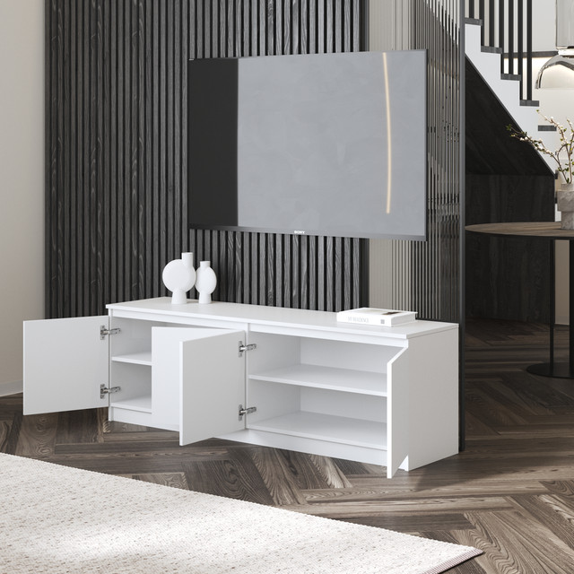 Тумба з полицями на 4 двері, тумбочка під телевізор з фасадами без ручок R-31